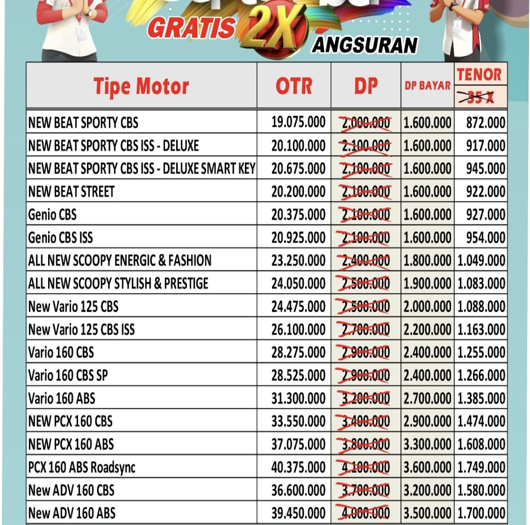 Lagi cari motor HONDA ? DP dan ANGSURAN murah ? Promo menarik, proses cepat, persyaratan mudah, CASH atau CREDIT. Yuk tanya infonya disini !